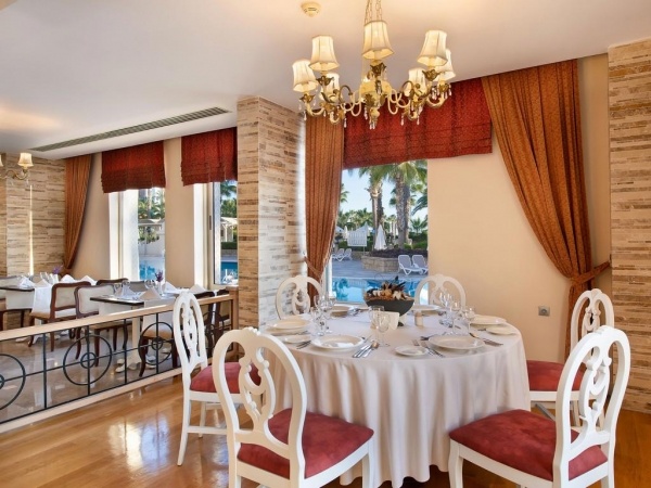 Általános: ELHELYEZKEDÉS: Çolakl? o Side 5 km o Antalya repülőtér 55 km o 240.000 m?-es területen fekszik o a közeli városok helyi busszal (dolmus) vagy taxival elérhetők o a szálloda akadálymentesített TENGERPART: közvetlenül a szálloda előtt o homokos o napernyők, napozóágyak és strandtörölközők ingyen o pavilonok térítés ellenében ELLÁTÁS: ultra all inclusive o svédasztalos reggeli, ebéd és vacsora o korai és késői reggeli o délutáni és éjszakai snackek o diétás és vegán menü o kávé, tea és sütemények o fagylalt o gözleme o minden helyi és néhány import alkoholos és alkoholmentes ital o minibár o térítés ellenében: prémium és egyes import alkoholos/alkoholmentes italok o palackozott italok o a'la carte éttermek (előzetes foglalás szükséges) o szobaszerviz SZOLGÁLTATÁSOK: kültéri medencék napernyőkkel és nyugágyakkal o beltéri medence o aquapark o főétterem o bárok (lobby, medence, tengerpart stb.) o nappali és esti animációk o esti show o élőzene o karaoke o fitneszterem o TV-sarok o mozi o vízilabda o vízi torna o futballpálya o kosárlabda o teniszpályák o strandröplabda o asztalitenisz o reggeli torna o aerobik o step-aerobik o darts o boccia o minigolf o szauna o törökfürdő o gőzfürdő o jacuzzi o wifi o térítés ellenében: SPA-központ o masszázs o törökfürdős kezelések o kozmetikai kezelések o fodrászat o üzletek o orvosi szolgálat o mosoda o biliárd o bowling o játékterem o teniszpálya-világítás o teniszfelszerelés és -oktatás o kerékpár- és autóbérlés o vízi sportok a tengerparton o konferenciatermek GYERMEKEKNEK: gyermekmedencék o beltéri gyermekmedencék o gyermek aquapark o miniklub (4-12 év) o tinédzser klub o játszótér o miniállatkert o mini diszkó o minimozi o gyermekanimáció o PlayStation o LEGO-szoba o Nintendo Wii o gyermekmenü o etetőszékek o babakocsi térítés ellenében SZOBÁK: 244 szoba o erkély o központi légkondicionálás o hajszárító o TV o telefon o széf o minibár (naponta feltöltve) o vízforraló o kávé- és teafőző szett o köntös és papucs o wifi Superior szoba: 28 m?, max. 3 fő, kertre, tengerre vagy oldalról tengerre néző Családi szoba: 45 m?, max. 4 fő, tengerre vagy oldalról tengerre néző Connection szoba: 56 m?, max. 6 fő, 2 hálószoba ajtóval elválasztva, kertre, tengerre vagy oldalról tengerre néző