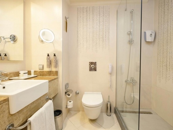 SZOBÁK: 308 szoba o erkély o központi légkondicionálás o hajszárító o TV o telefon o széf o minibár (naponta feltöltve) o vízforraló o kávé- és teafőző szett o köntös és papucs o wifi