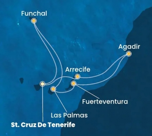 Reggeli után egy félnapos túra keretén belül megtekintjük Puerto de La Cruz városát, majd ezt követően transzfer a kikötőbe és megkezdődik a beszállásunk a hajóba.