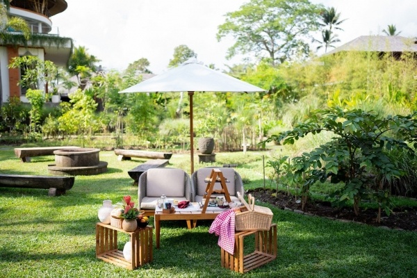 A szálloda mindössze körülbelül 7 kilométerre található Ubud központjától. Éttermek, bárok és üzletek nagyjából 2,5 kilométerre érhetők el, míg Denpasar központja 27 kilométerre, Kuta pedig 37 kilométerre fekszik. A denpasari repülőtér körülbelül 42 kilométerre található, így könnyen megközelíthető. A legközelebbi buszmegálló a szállodától rövid távolságra helyezkedik el, ami kényelmes közlekedési lehetőséget biztosít.