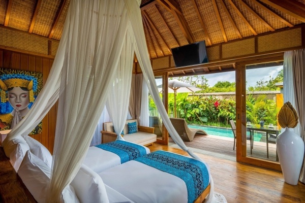 A szálloda mindössze körülbelül 7 kilométerre található Ubud központjától. Éttermek, bárok és üzletek nagyjából 2,5 kilométerre érhetők el, míg Denpasar központja 27 kilométerre, Kuta pedig 37 kilométerre fekszik. A denpasari repülőtér körülbelül 42 kilométerre található, így könnyen megközelíthető. A legközelebbi buszmegálló a szállodától rövid távolságra helyezkedik el, ami kényelmes közlekedési lehetőséget biztosít.