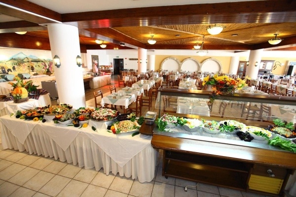 reggeli (07.00-10.00), ebéd (12.30-14.30) büfé stílusban és vacsora (19.00-21.30 nyári szezonban, 18.30-21.00 téli szezonban) büfé vagy menü az Arodaphnousa étteremben