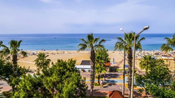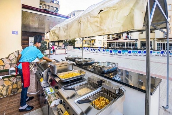 Szállás leírás: A 4*-os, 5 emeletes épületből álló, összesen 233 szobával rendelkező szálloda kb. 1 km-re Alanya városközpontjától, kb. 50 m-re a homokos tengerparttól helyezkedik el.