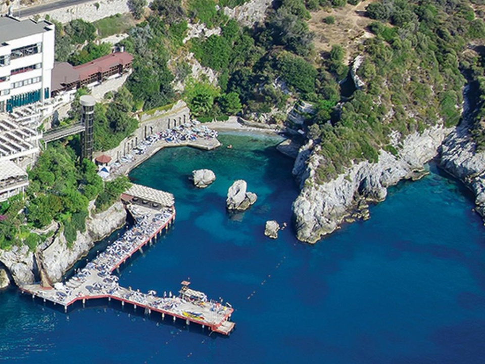 Tengerpart, medencék és aquapark: közvetlen, sziklás, rögtön mélyülő, privát tengerpart, szabadtéri medence, fedett medence, napozóterasz, vízicsúszda.