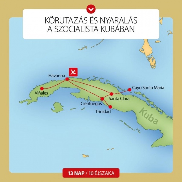 Cayo Santa Maria Kuba egyik festői tengerparti üdülőhelye. Adja át magát a karibi napsütés simogatásának, a fehér homokos tengerpart, az elképzelhetetlenül türkizkék csillogású víztükör látványának! Élvezze a hotelben az all inclusive ellátást, a gondtalan pihenést, és feltöltődést a földi paradicsomban!