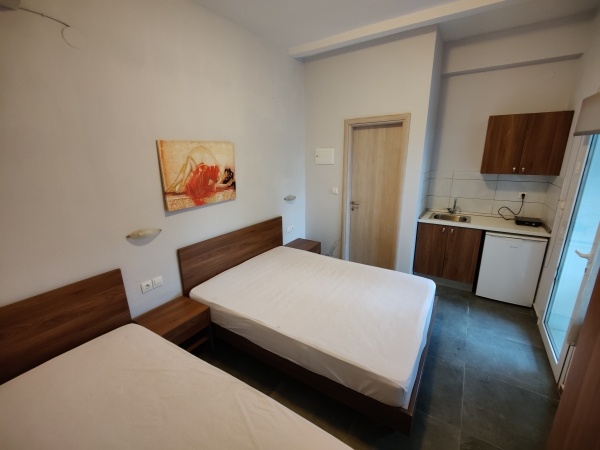 - 2-3 és 3-4 ágyas stúdiók: udvarra/utcára néző földszinti és emeleti szobák, ahol a konyhasarok és a queen size méretű ágyak egy légtérben vannak. A stúdiók felszereltségéhez légkondicionáló (felár a helyszínen fizetendő, 42 EUR/készülék/hét), tévé, konyhasarok - mely a legszükségesebb eszközökkel felszerelt -, fürdőszoba zuhanyzóval, illetve kerti bútorokkal berendezett terasz tartozik. A 2-3 ágyas stúdiókban a 3. fő részére a pótágy normál ágy, a 3-4 ágyas stúdióban 2 franciaágy található.
