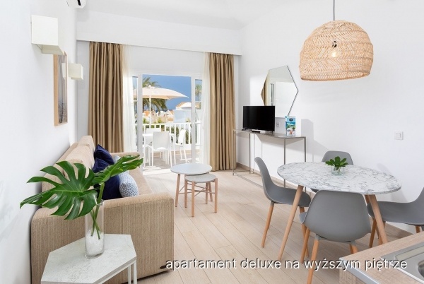 SZOBA: deluxe apartman: 2 fős (1 pótágy felnőttnek vagy 2 pótágy gyerekeknek), kb. 44 m2, légkondicionált, fürdőszoba (zuhanyzó, WC; hajszárító, kozmetikai garnitúra), hálószoba és nappali, főzőfülke, vezeték nélküli Internet, műholdas TV, széf ( Fizetős parkoló); ingyenes kiságy 2 éves korig érkezés előtti megrendelésre; terasz (asztal és székek); felsőbb emeleti deluxe apartman felár ellenében; deluxe két hálószobás apartman: 3 személyes (3 pótágy lehetséges), kb. 80 m2, 2 hálószoba és egy nappali konyhasarokkal, berendezése mint egy deluxe lakásban; terasz (asztal és székek); deluxe apartman 2 hálószobával, felár ellenében.