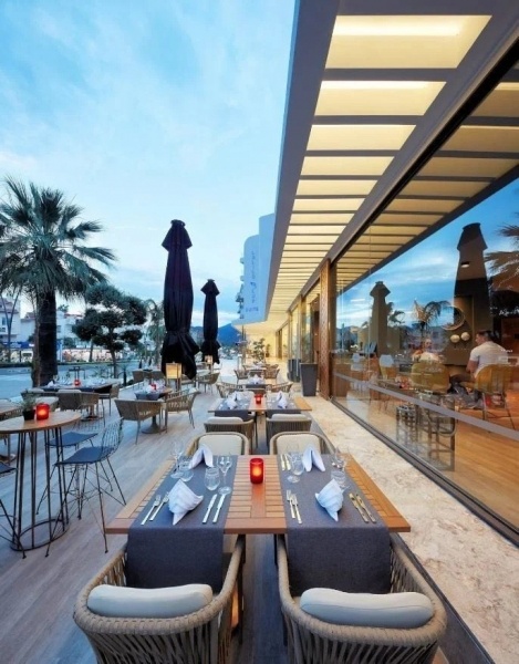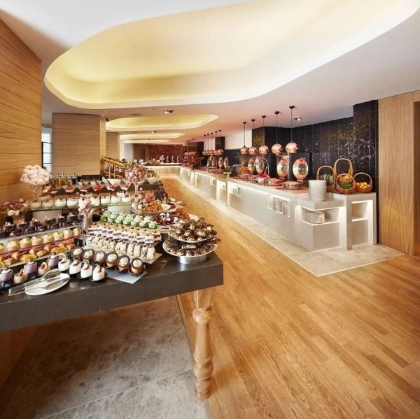 Az all inclusive 23:30-ig tart, mely tartalmazza a reggelit (7:00-10:30), az ebédet (12:30-14:00), a vacsorát (19:00-21:30) büfé formájában. Napközbeni harapnivalók. Helyi gyártmányú alkoholmentes és alkoholos italok a szálloda által meghatározott időpontokban és helyeken. Felár ellenében: importált alkoholos italok, török kávé, friss gyümölcslevek, válogatott italok és koktélok.