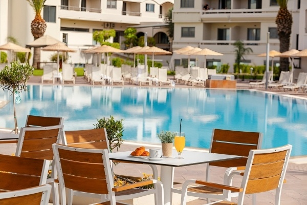 A szálloda Kolymbia központjában található, ahol üzletek, tavernák és bárok állnak rendelkezésre. A homokos strand kb. 250 m-re, a híres Tsambika-strand kb. 6 km-re, az Anthony Quin strand pedig kb. 13 km-re található.