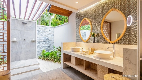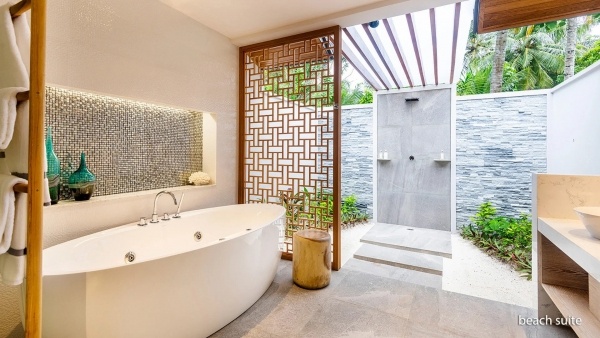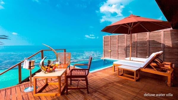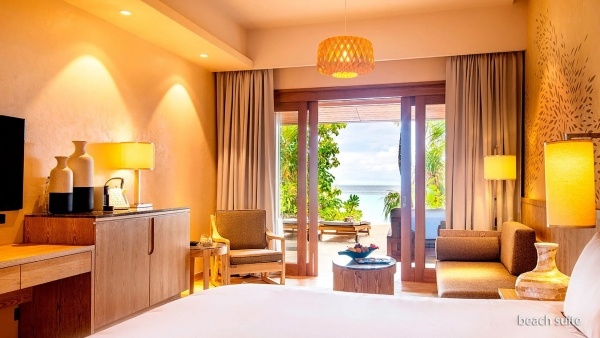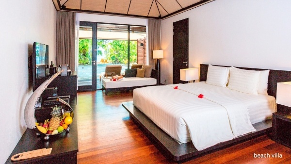SZOBÁK: beach villa: 2 fő (1 pótágy lehetőség felnőttnek vagy 2 gyermeknek), kb. 68 m2, egyedi vezérlésű légkondicionálás, mennyezeti ventilátor, külső fürdőszoba (kád, zuhanyzó, wc; hajszárító, köntös, papucs), üveg a szoba és a fürdőszoba között, amely eltakatható, vezeték nélküli internet, műholdas televízió, telefon, minibár (naponta vízzel feltöltve, fogyasztás szerint fizetendő), kávé/tea készlet, széf, vasaló és vasalódeszka (a recepción kölcsönözhető); ingyenes kiságy 2 év alatti gyermekeknek, ha a vendég a megérkezés előtt kérte; terasz (asztal és napozóágyak); beach suite: 2 fő (1 pótágy lehetőség felnőttnek vagy 2 gyermeknek), kb. 76 m2, félig nyitott fürdőszoba (kád, külső zuhanyzó, wc; hajszárító, köntös, papucs), felszereltség mint a beach villa, plusz egy üveg pezsgő üdvözlésként; új beach suite felár ellenében; deluxe water villa: 2 fő (1 pótágy lehetőség felnőttnek vagy 2 gyermeknek), kb. 126 m2, fürdőszoba (kád, zuhanyzó, hajszárító, köntös, papucs), felszereltség mint a beach villa; terasz pihenőhellyel, jakuzzi és közvetlen tengerbe jutás; deluxe water villa felár ellenében; a deluxe water villa-ban való elhelyezéshez a 12 év alatti gyermekeknek a szülőknek teljes felelősségvállalási nyilatkozatot kell kitölteniük.