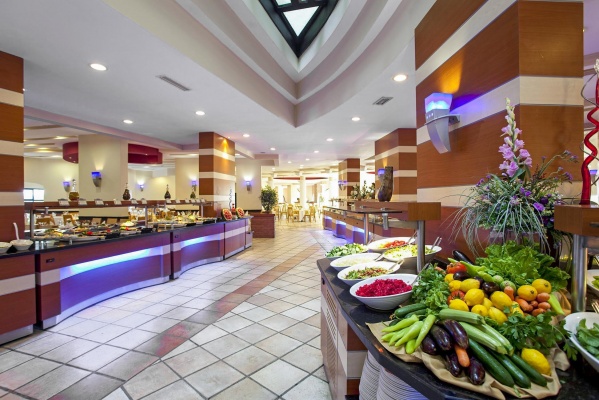 - Ultra All Inclusive: minden étkezés büférendszerben, reggelinél kávé, tea és palackozott üdítők, ebédnél és vacsoránál üdítők, sör, bor és egyes alkoholos italok, reggeli korán kelőknek 02:00 és 07:00 óra között, reggeli későn kelőknek 10:00 és 11:00 óra között, a cukrászdában 14:00 és 17:00 óra között üdítők, kávé, tea és desszertek, éjszakai snack-ételek 22:30 és 02:00 óra között, a snack-étteremben 12:00 és 16:00 óra között könnyű snack-ételek, a strandbárban fagylalt 13:00 és 17:00 óra között, a Lykia bárban gözleme 11:00 és 16:00 óra között, helyi alkoholos és alkoholmentes italok a strandbárban 10:00 és 18:00 óra között, lobby-bárban egész nap, az Odeon bárban 10:00 és 24:00 óra között, a diszkóban 23:00 és 02:00 óra között, vacsoráznia az a'la carte-éttermek egyikében is lehet 19:00 és 21:30 óra között (török és grill ingyenesen, további éttermek térítés ellenében, előzetes foglalás szükséges). Az Ultra All Inclusive szállodák szolgáltatásai bizonyos részletekben szállodánként eltérhetnek.