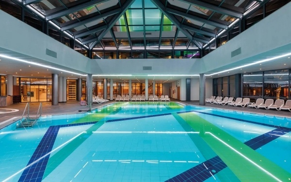 - 3 nagy úszómedence, köztük csúszdákkal és gyerekmedencével