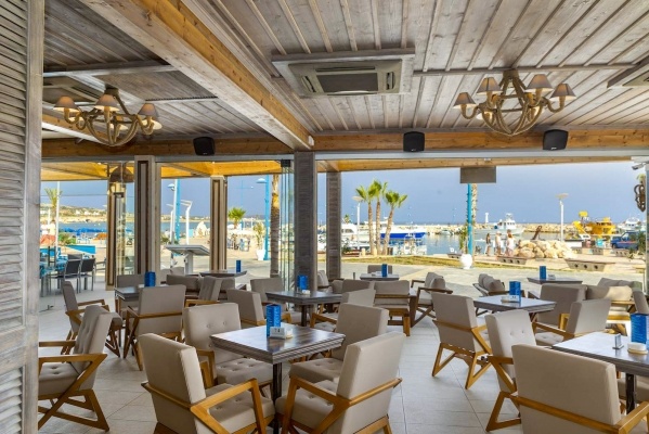 Étkezés: büféreggelivel, felár ellenében félpanzió (büféreggeli és vacsora) vagy teljes panzió (büféreggeli, ebéd és vacsora) is foglalható. Az étterem kínálatában friss tengeri ételek, ciprusi és görög specialitások, valamint nemzetközi fogások is szerepelnek. A vacsoráknál a helyi alapanyagok frissessége és a minőségi kiszolgálás kiemelt szerepet kap. A tengerre néző teraszos étterem különleges hangulatot biztosít a vacsorákhoz.