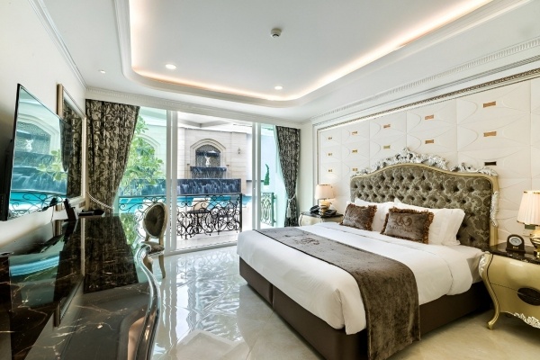 Deluxe szoba közvetlen kijárattal a medencéhez 2 fős: kb. 34 m2, légkondicionált, fürdőszoba (kád vagy zuhanyzó, WC, hajszárító, köntös, papucs), vezeték nélküli internet, televízió, telefon, kávé-/teafőző készlet, vasalókészlet, kis hűtőszekrény, terasz (asztal és székek), közvetlen kijárattal a medencéhez, medencére néző kilátás, felár ellenében: széf, minibár (fogyasztás szerint fizetendő).