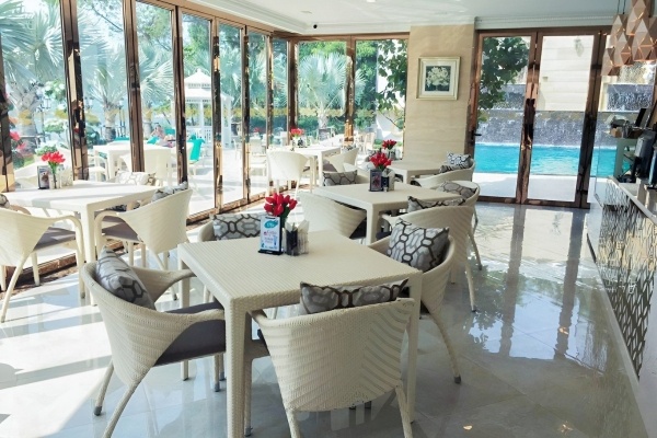 Deluxe szoba közvetlen kijárattal a medencéhez 2 fős: kb. 34 m2, légkondicionált, fürdőszoba (kád vagy zuhanyzó, WC, hajszárító, köntös, papucs), vezeték nélküli internet, televízió, telefon, kávé-/teafőző készlet, vasalókészlet, kis hűtőszekrény, terasz (asztal és székek), közvetlen kijárattal a medencéhez, medencére néző kilátás, felár ellenében: széf, minibár (fogyasztás szerint fizetendő).