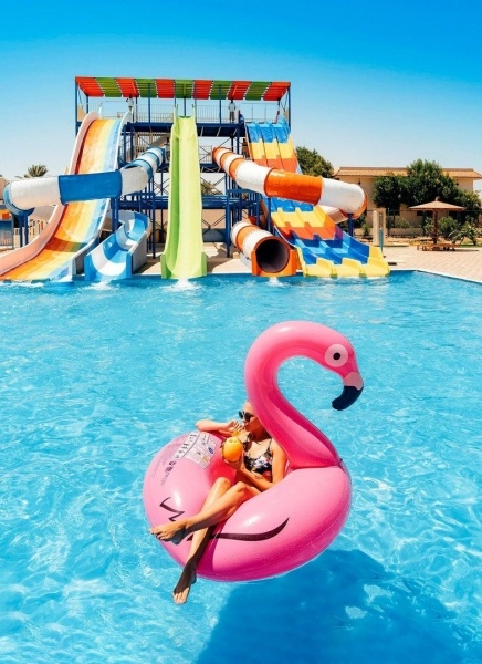 5 medence, ebből 1 fűtött télen. Szabálytalan alakú, folyót imitáló medence, édesvíz, 500-1500 m? közötti területtel, 1,4-1,7 m mélységgel. 2 gyermekmedence, 0,5 m mélységig. Ingyenes napernyők, napozóágyak, matracok és törölközők a medencéknél. 2 teniszpálya világítással (kb. 20 USD/óra), sportfelszerelés kölcsönzhető. Sport és szórakozás: asztalitenisz, minigolf, röplabda, konditerem és fitnesz. 2 játszótér és gyermekjátszó szoba, mini-klub 4-12 éves gyermekek számára. Szórakozás: diszkó és egész évben zajló animációs programok felnőtteknek és gyermekeknek, sportjátékok és aktivitások. Külön díjért: squash pálya, biliárd, vízi sportok a strandon: búvárkodás, snorkelling. Szépségszalon és wellness központ: szauna, jacuzzi, masszázsok.