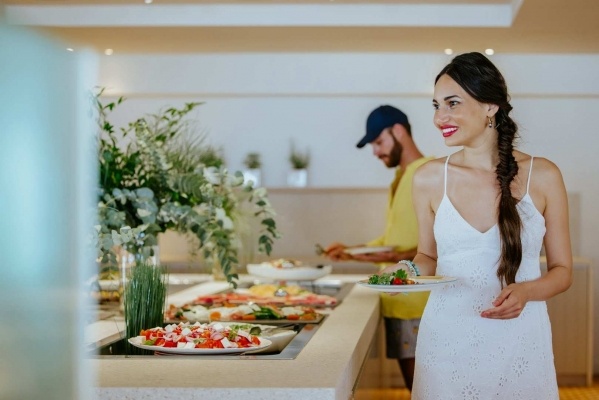 Étkezés: svédasztalos reggeli. Friss gyümölcsök, pékáruk, hideg és meleg fogások, tojásételek, zöldségek, joghurtok és különféle italok - kávé, tea, friss gyümölcslevek - teszik teljessé a kínálatot.. A félpanziós ellátás a reggelin kívül vacsorát is tartalmaz. A vacsora is svédasztalos formában zajlik, amely a nemzetközi és helyi ízek változatos kombinációját nyújtja. A vendégek helyi ciprusi specialitásokat is kóstolhatnak, valamint élvezhetik a tematikus estek változatos fogásait. A teljes ellátás a három főétkezést tartalmazza (a félpanzió + ebéddel egészül ki). Az étkezések során kiemelt figyelmet fordítanak az ételek minőségére, frissességére, és igyekeznek minden ételallergiát vagy diétás igényt is kielégíteni.
