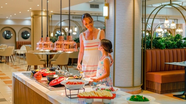 A ,,Minden benne van" ellátás keretében a vendégek bőséges reggelit (7.00-10.00), ebédet (12.30-14.30) és vacsorát (18.30-21.30) fogyaszthatnak az Anemi főétteremben, késői reggeli (10.00-12.00) a Sundowner étteremben érhető el. Napközben snackek (15.00-17.00 és 18.30-24.00) állnak rendelkezésre az Anemi és a Sundowner éttermekben. A kijelölt bárokban 10.00 és 24.00 óra között helyi alkoholos és alkoholmentes italokat szolgálnak fel, hogy a vendégek a nap bármely szakában élvezhessék a gondtalan pihenést.