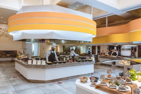 - All Inclusive: minden étkezés büférendszerben, reggeli későn kelőknek 10:30 és 11:00 óra között, fast food bistro 11:00 és 18:00 óra között, étkezés az ázsiai a'la carte-étteremben 10:00 és 21:30 óra között, napközben snack-ételek és fagylalt 11:00 és 17:00 óra között, vacsora a Kalypso tavernában 19:00 és 21:30 óra között, helyi alkoholos és alkoholmentes italok 10:00 és 24:00 óra között. Az All Inclusive szállodák szolgáltatásai bizonyos részletekben szállodánként eltérhetnek.
