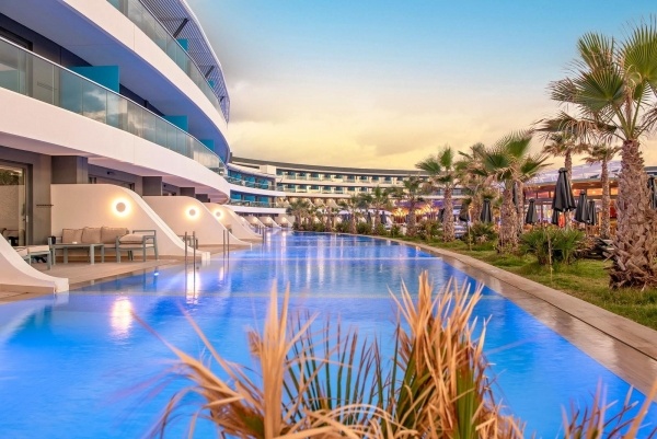 - családi szobák - 2 hálószoba, tolóajtóval, medencére vagy tengerre nézők, a szobák nem a szálloda központi részére néznek a főmedencével
