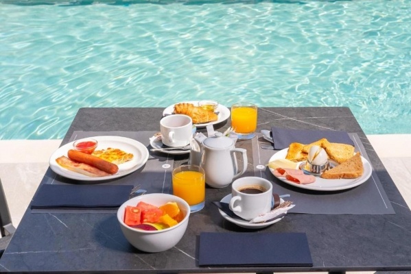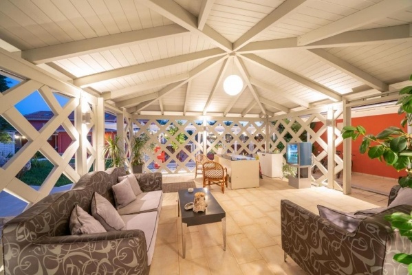 A'la carte étterem a komplexum területén, recepció, 2 kinti medence, napozóágyak, napernyők, medencebár, étterem, WiFi, TV, kert, parkoló, autóbérlés, BBQ lehetőség, akadálymentesített közlekedés biztosított.