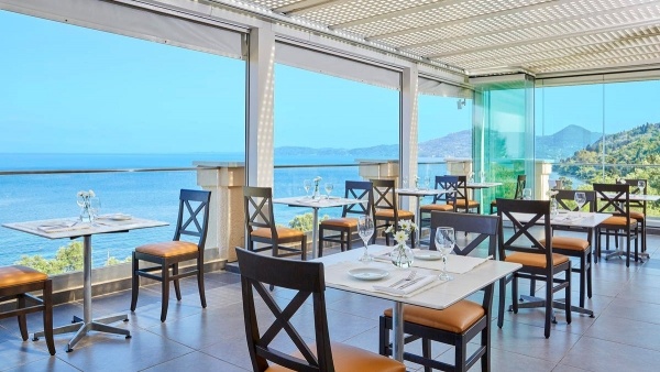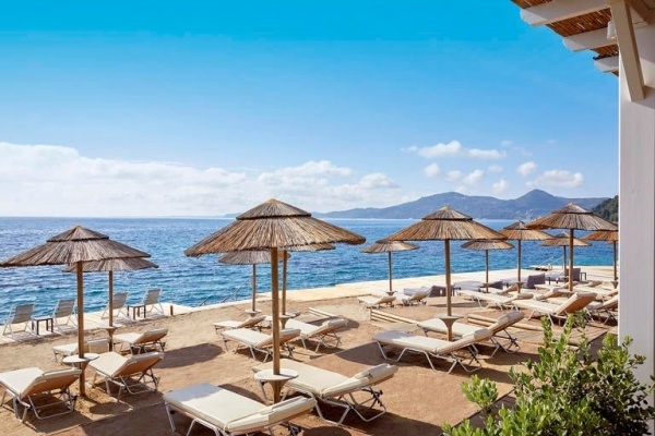 Tengerpart:A homokos-kavicsos strand kb. 100 m található a szállodától épülettől függően, melyet a kerten illetve egy alagúton keresztül lehet megközelíteni. A strand egy részén stégről lehet létrán keresztül a tengerbe jutni. A strandon napágyak és napernyők ingyenesen állnak rendelkeztésre, öltözők és zuhanyzó is elérhető.