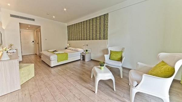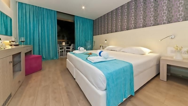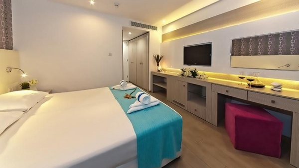 Szobák: minden standard szoba egyedi színvilágú, szépen berendezett, egyhálószobás (~22 m2), légkondicionált, fürdőszobás, hajszárítóval, síkképernyős tv-vel, vízforralóval (kávé és teafőzési lehetőség) és telefonnal felszerelt. A családi szoba (4 fős), azonos felszereltséggel, mint a standard szoba, nagyobb alapterületű (~25 m2), ahol a gyermekek elhelyezésére emeletes ágyon biztosított. A szuperior szoba berendezése és kialakítása elegánsabb. Minden szobához erkély tartozik szárazföldre, oldal tengerre vagy tengerre néző kilátással. Széf és minihűtő térítés ellenében a helyszínen bérelhető.