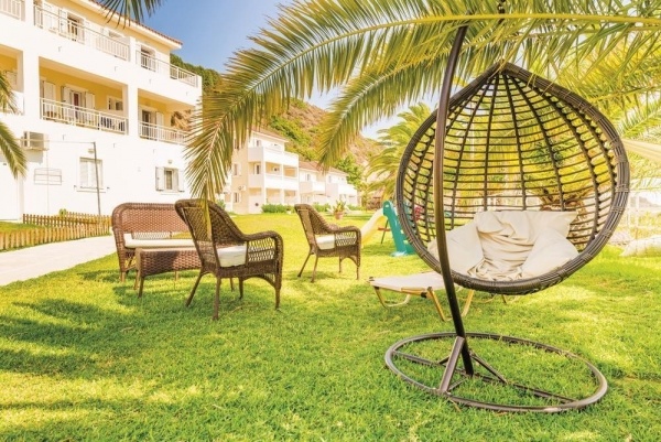 A szálloda a híres és nyüzsgő Skalától kb. 3 km-re található, a festői Mounda öbölben. A családi vezetés alatt álló létesítmény egy gondozott kertben helyezkedik el, amely a sziget egyik legszebb, a turistaforgalomtól érintetlen strandjában végződik. A szobákból, valamint a szálloda egyes részeiből egyedülálló kilátás nyílik a Jón-tenger türkizkék vizére. A buszmegálló kb. 2 km-re található. Minden korosztály számára ajánljuk.