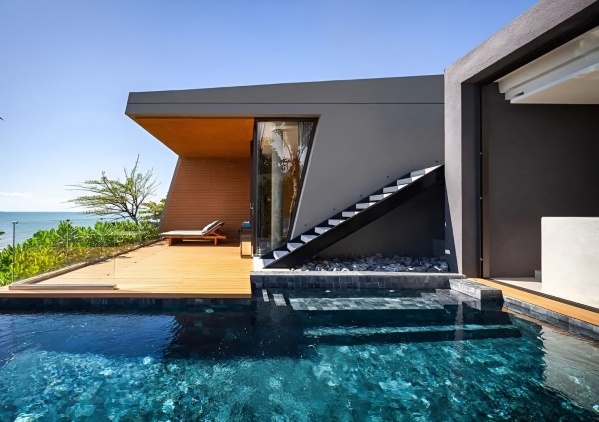 Duplex grand pool villa - kb. 154 m?, klimatizált, üvegezett fürdőszoba (kád, WC, hajszárító), vezeték nélküli internet, 2 smart tv, nespresso kávéfőző, kis hűtőszekrény, terasz asztallal, napozóágyakkal, privát jakuzzis sós vízű medencéhez való hozzáférés, kilátás a környékre. Felár ellenében széf.