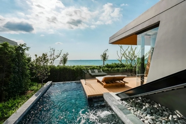 Duplex grand pool villa - kb. 154 m?, klimatizált, üvegezett fürdőszoba (kád, WC, hajszárító), vezeték nélküli internet, 2 smart tv, nespresso kávéfőző, kis hűtőszekrény, terasz asztallal, napozóágyakkal, privát jakuzzis sós vízű medencéhez való hozzáférés, kilátás a környékre. Felár ellenében széf.