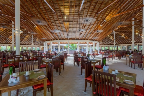 A szállodában két fő étterem található, amelyek nemzetközi konyhát kínálnak büfé formájában. A Farivalhu étterem a déli szigetrészen található, és a standard szobákban, tengerparti villákban és jacuzzis villákban lakó vendégek számára elérhető. A Maalan étterem csak felnőtteknek (18+) szól, és az északi szigetrészen található vízparti villákban és jacuzzis villákban lakó vendégek számára elérhető.