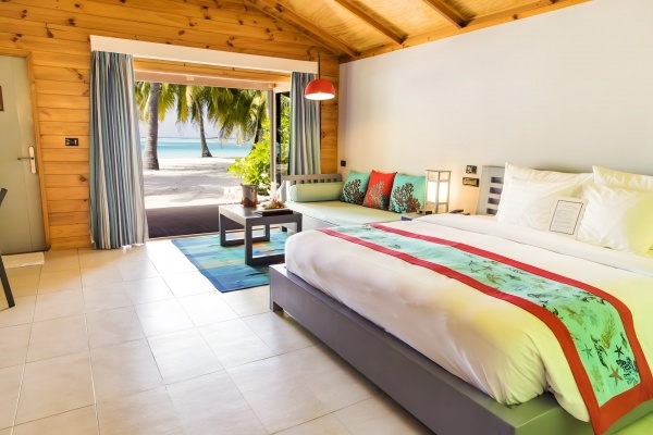 A tengerparti villa két fő részére alkalmas, egy pótágy lehetőségével felnőttnek vagy két gyermeknek. Az alapterülete körülbelül 56 m?, és a felszereltsége megegyezik a standard szobáéval. A teraszon asztal és székek találhatók, valamint közvetlen lejárat van a strandra. A tengerparti villa felár ellenében vehető igénybe.