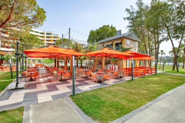 - Ultra All Inclusive: minden étkezés büférendszerben, reggeli későn kelőknek 10:30 és 11:00 óra között, éjfélkor snack-ételek 00:00 és 02:00 óra között, délutáni frissítők 12:00 és 17:00 óra között, desszertek 11:00 és 20:00 óra között, gözleme (török palacsinta) 12:00 és 15:30 óra között, fagylalt 13:00 és 17:00 óra között, gyümölcs, gofri és fánk 14:00 és 17:00 óra között, sült krumpli, szendvicsek, pirítós, churros, palacsinta, kebab és tantuni 11:00 és 18:00 óra között, vacsora a 2 a'la carte-étteremben 18:45 és 21:15 óra között (térítés ellenében, előzetes foglalás szükséges), helyi alkoholos és alkoholmentes italok egész nap. Az Ultra All Inclusive szállodák szolgáltatásai bizonyos részletekben szállodánként eltérhetnek.