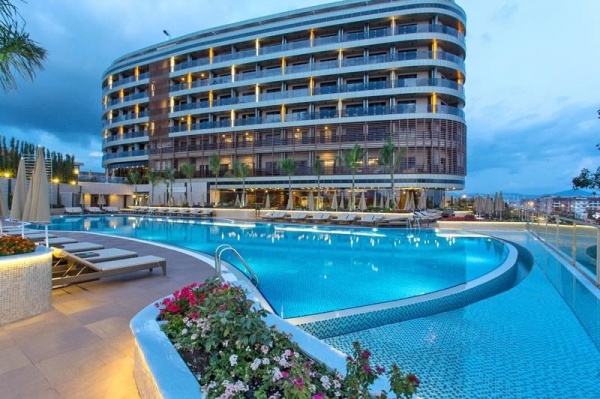 ELHELYEZKEDÉS: Alanya kb. 5 km o Antalya repülőtér kb. 135 km o kb. 5.000 m? területen fekszik o mozgáskorlátozottak számára kialakított szoba o a szálloda 16 év feletti vendégek számára elérhető
