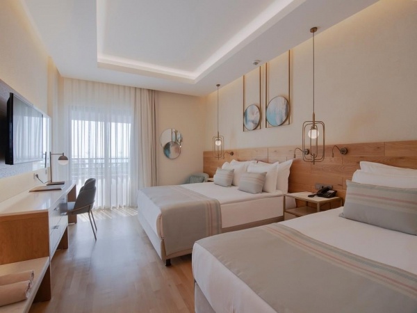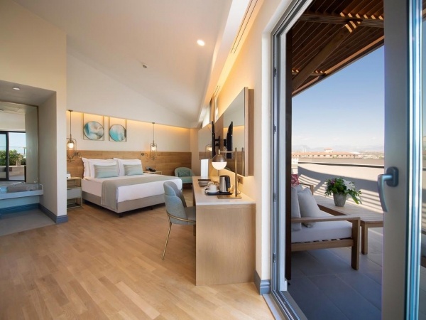 SZOBÁK: 276 szoba o erkély vagy terasz o légkondicionálás o hajszárító o TV o telefon o széf o minibár (naponta feltöltve) o kávé- és teafőző szett o köntös és papucs o wifi o Economy szoba (erkély nélkül): 26 m?, kilátás a tájra o Superior szoba: 30 m?, kilátás a tájra, tengerre vagy oldalról tengerre o Superior családi szoba: 42 m?, 2 szoba ajtóval elválasztva, kilátás a tájra o Superior corner szoba: 35 m?, kilátás a tájra o Deluxe Terrace szoba: 80 m?, jacuzzival o Deluxe Private Garden szoba: 80 m?, 38 m?-es privát kerttel o Suite: 70 m?, jacuzzival a fürdőszobában