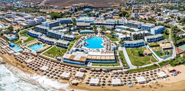 A kedvelt szálloda hatalmas területen helyezkedik el, közvetlenül a tengerparton, a népszerű Kokkini Haniban. A több épületből álló létesítményben Ultra All Inclusive ellátással, változatos sporolási lehetőségekkel, gyermekklubokkal és spa-központtal várják a vendégeket. Minden korosztály számára ajánljuk.