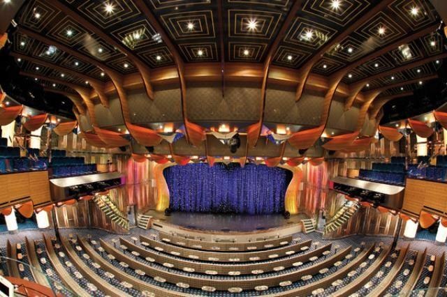 • Teatro Duse (Deck 2–3): a fő showterem, ahol látványos énekes-táncos előadások, akrobatikus produkciók és zenei estek zajlanak.