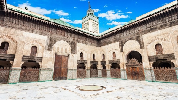 Reggeli után városnézés az ország vallási és szellemi központjában, Fezben, mely kihagyhatatlan állomása egy marokkói utazásnak. Városnézés az ősi királyi városban: a középkori Medina és a területén található Bou Inania medresze (iszlám vallási iskola), a Nejjarine kút, a Moulay Idriss mauzóleum és a Karaouine mecset megtekintése kívülről, majd látogatás az egzotikus soukokban és az új városrészben, Fez Jdid-ben, mely ,,csupán" 700 éves. Vacsora és szállás Fezben.