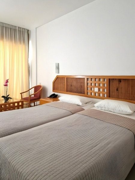 A kényelmesen berendezett, kb. 22 m?-es standard szobák két fő részére kínálnak elhelyezést, pótágy igényelhető. A szobák légkondicionáltak a nyári szezonban, fűtöttek télen, és fürdőszobával (káddal vagy zuhanyzóval, WC-vel, hajszárítóval), műholdas televízióval, telefonnal, vezeték nélküli internettel, valamint kérésre hűtőszekrénnyel felszereltek. Minden szobához erkély tartozik asztallal és székekkel, felár ellenében széf is igénybe vehető. A superior szobák tengerre néző kilátással rendelkeznek, hasonló felszereltséggel, míg a medencére néző standard szobák a szálloda kertjére és medencéjére nyújtanak kilátást. A családok számára ideális, kb. 44 m?-es családi szobák két pótággyal négy fő részére biztosítanak kényelmes tartózkodást, a tengerre néző változatuk pedig még szebb panorámát kínál. Egyágyas szobák is elérhetők, standard és tengerre néző kilátással, hasonló kényelmi felszereltséggel, erkélyes kialakítással.