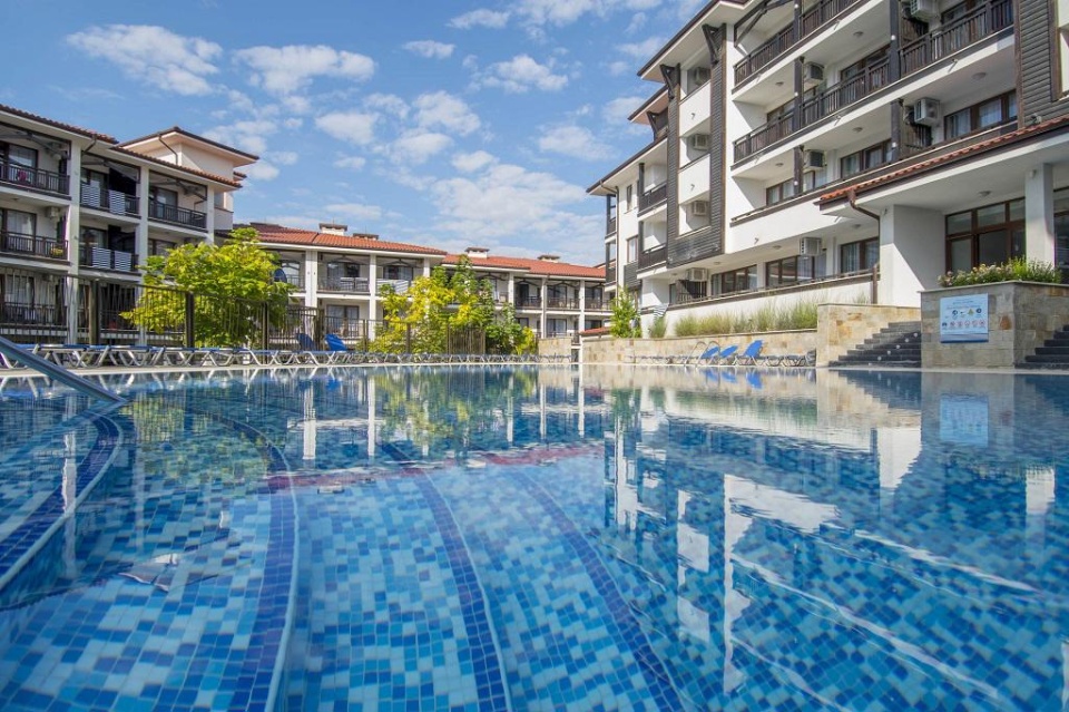 Szállás leírás: A 3*-os, A Nevis Resort a Várna - Nessebar főútvonalon található, körülbelül 700 méterre a strandtól és 1500 méterre az üdülőhely központjától. A Nevis Resort családok és párok nyugodt, pihentető nyári vakációjára készült. A szálloda vendégei a tengerre és az üdülőhelyre nyíló lenyűgöző kilátás, a gyönyörűen kialakított kertek, a friss és tiszta hegyi levegő varázslatos kombinációját élvezhetik a bőséges All Inclusive csomaggal kombinálva. 2017-ben épült, 328 szoba, 4 épület, 10 lift, max. 5 emelet, 50 000 m2 aquapark és kertek alkotják.