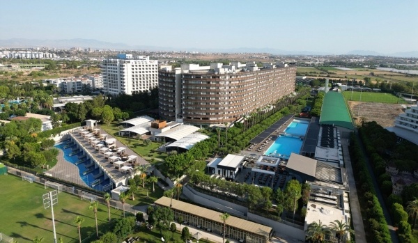 Ez az igényes vendégkörnek szóló luxusszálloda a népszerű Lara üdülőhelyen található. A szálloda közvetlenül a tengerparton helyezkedik el, kb. 16 km-re Antalya központjától és kb. 12 km-re Antalya repülőterétől. Antalya repülőterétől. A komplexum része többek között a focipályák, világított teniszpályák, padelpályák, sportcsarnok, teljesen felszerelt kétszintes fitneszcentrum, nagy vízipark, kávézók, több étterem, konferenciaközpont és a Cosmos City bevásárlóközpont.
