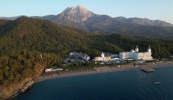 A szálloda közvetlenül egy körülbelül 1 km hosszú homokos-kavicsos strandon található, melyet a Taurus-hegység ölel körül a másik oldalról. A napágyak, törölközők és napernyők ingyenesek. A móló strandbárral (09:00-19:00) benne van az árban. A pavilonok díj ellenében vehetők igénybe. A titkos strand csak tengeren keresztül megközelíthető (pl. paddleboarddal, amely a szállodában bérelhető).