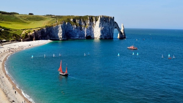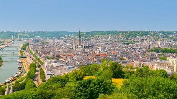 Reggeli után elutazás az Etretat-ba, amely lenyűgöző, fehérben pompázó mészkőszikláiról lett ismert, és látogatás a sziklák tetejére telepített modern művészeti panorámás kertben. Rövid séta után utazás a Szajna-delta legnagyobb fesztávú hídján Honfleurbe, Normandia legszebb halászfalujába. A településen a 19. században sok művész és író tartózkodott, köztük Baudelaire, Boudin és Monet. Látogatás a XV. századi, Franciaország legrégebbi fatemplomában, a Sainte Catherine-ben, majd szabadidő a macskaköves utcák, galériák, kávézók övezte pezsgő életű városban. Szállás Rouen környékén.