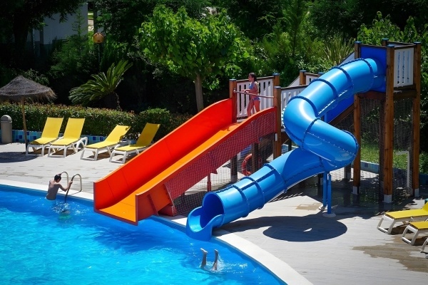 • Medence csúszdákkal és gyermekmedence vízi játszótérrel