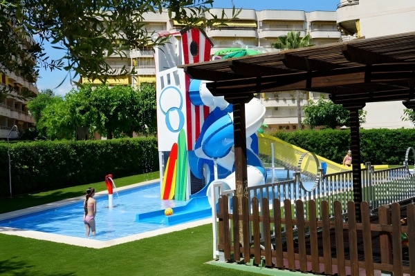 - Medence csúszdákkal és gyermekmedence vízi játszótérrel