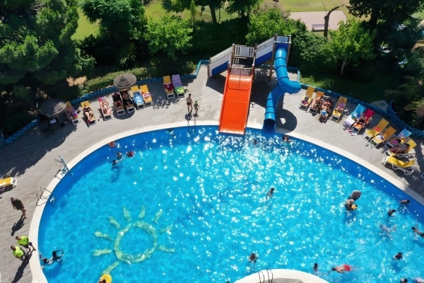 • Medence csúszdákkal és gyermekmedence vízi játszótérrel