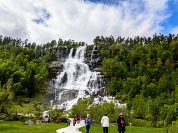 Reggelit követőn a Hardanger Nemzeti Park és a névadó Hardanger-fjord vidékére indulunk. Először a Steinsdalsfossen vízesés impozáns vízfüggönyén álmélkodunk majd átszeljük a fjordot a leghosszabb norvég függőhídon, a kecses Hardanger-hídon keresztül. Később Eidfjord városka kikötőjénél tartunk szünetet, aztán megállunk az ország talán leglátványosabb szakadék-vízesésénél, a 182 méteres V?ringsfossennél is. A tartalmas nap utáni jól megérdemelt éjszakai pihenőnket Fl?ban, a Thon Björneparken szállodában tartjuk.
