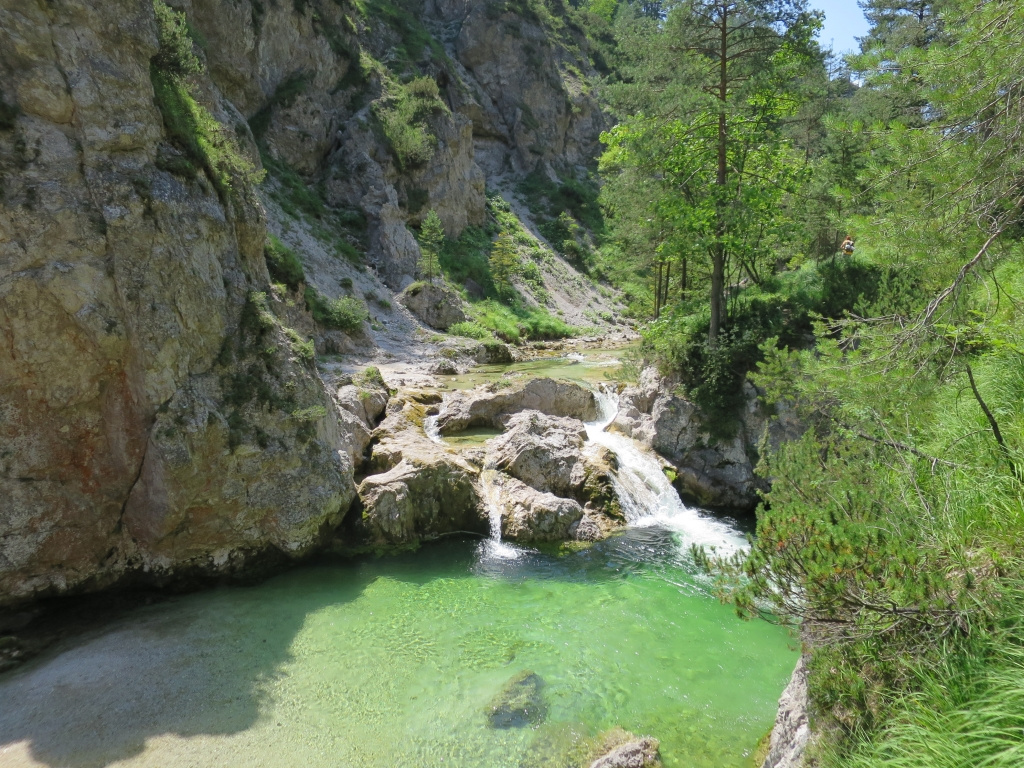 Körülbelül másfél óra óra alatt elérjük az Ötscherhias turistaházat, ahova egy nagy fahíd vezetett át. Itt egy-egy helyi specialitás is megkóstolható. Egy kis pihenés után alig 1 kilométeres séta után elérhető az egész környék talán legszebb vízesése, a Mirafall, amely mintegy 80 méteres magasságból zúdul le egészen lenyűgöző látványt nyújtva. Az út a szurdok oldalában folytatódik, a patak változatos zúgói és sziklába vájt medencéi mellett. Innen visszafelé egy erdei ösvényen felkapaszkodva, néhány kilométeres sétát követően elérhető az Erlaufklause megálló, ahol egy romantikus hegyi vasúttal térünk vissza Wienerbruckba, autóbuszunkhoz.