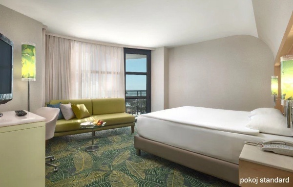 Standard szobák tengerre néző kilátással: 35-40 m?, erkéllyel. Központi légkondicionáló, wifi, minibár, TV, fürdőszoba (hajszárítóval, fürdőköpennyel, papuccsal, zuhanyzóval vagy káddal felszerelt.