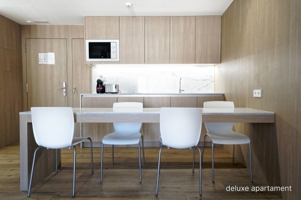 SZOBA: deluxe apartman: 2 fő (2 pótágy lehetséges), kb. 57 m2, hálószoba és nappali konyhasarokkal, ajtóval elválasztva, mennyezeti ventilátor, fürdőszoba (zuhanyzó, WC; hajszárító), vezeték nélküli internet, műholdas TV, telefon, széf, kávéfőző, kis hűtőszekrény; erkély vagy terasz (asztal és székek), kilátás a környékre; kilátás az úszómedencére térítés ellenében; deluxe két hálószobás apartman: 4 fő (2 pótágy lehetséges), kb. 79 m2, 2 hálószoba és egy nappali konyhasarokkal, ajtóval elválasztva, berendezése mint egy deluxe apartmanban; erkély vagy terasz (asztal és székek), kilátás a környékre; kilátás az úszómedencére térítés ellenében; deluxe apartman 2 hálószobával, felár ellenében.